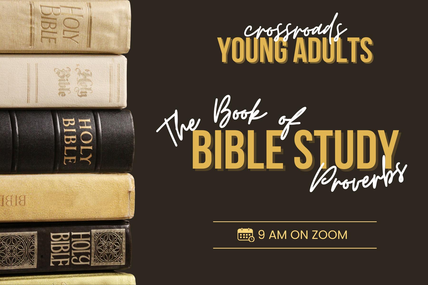 The Proverbs Bible study meets on the 1st Saturday of each month at 9:00am on Zoom. See Pastor Alex for more info.